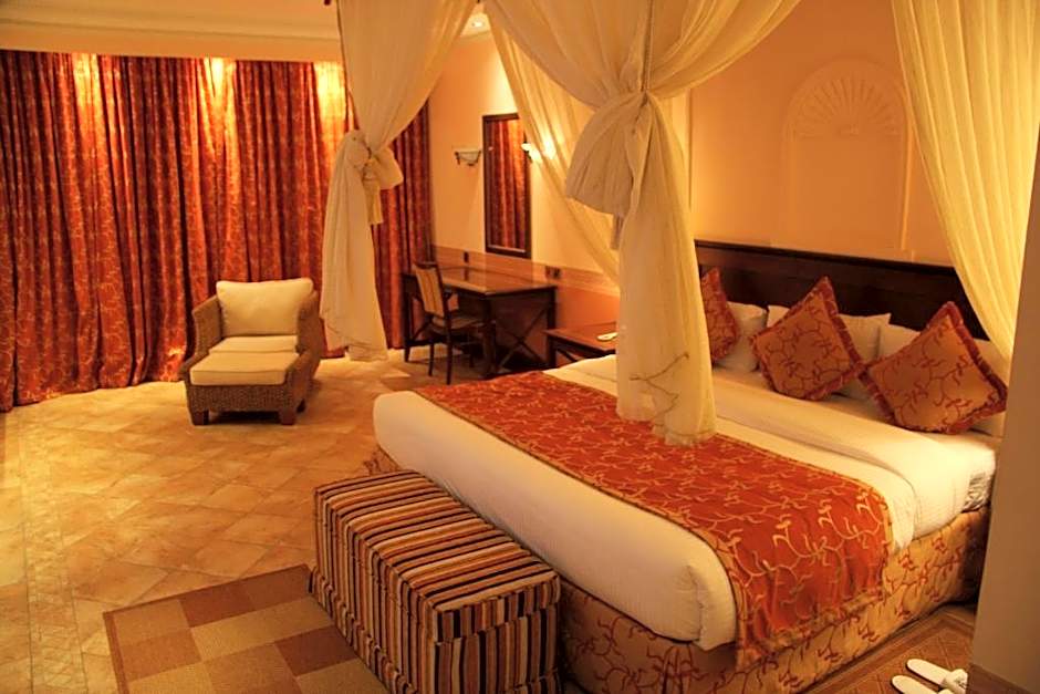 Executive Suite for single use includes balcony, desk, satellite tv , tea and coffee making facilities , and safe.